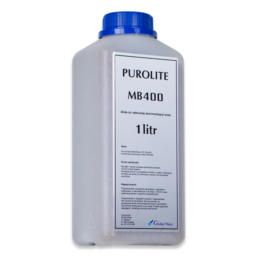 MB400 е готова за употреба смес от йонообменни пластове, предназначена за получаване на деминерализирана вода с висока химическа чистота.