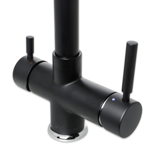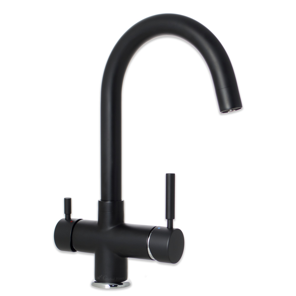 Висококачествен кухненски смесител с допълнителни връзки за филтрирана вода в две версии.