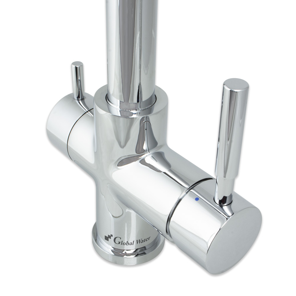 Гъвкави маркучи за топла и студена вода (всеки с дължина 50 см) са прикрепени към крана. Тръби, завършени с 3/8 “вътрешна резба. Третата, независима връзка е 1/4” връзка за стандартна тръба, използвана в кухненски филтри или системи за обратна осмоза.