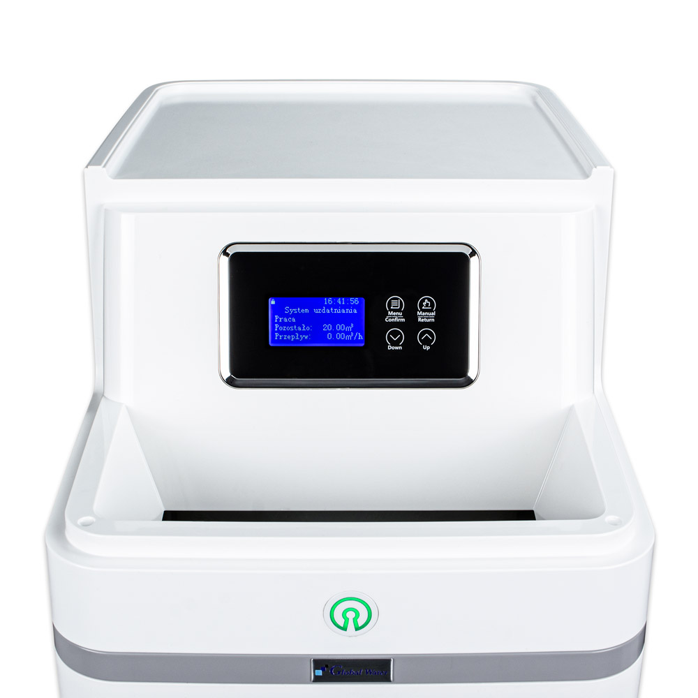 Интуитивна глава за управление на омекотител, която може да бъде програмирана дори от дете! Меню на полски език. Изберете само текущото време и твърдостта на подаваната вода и това е – електронният контролен модул ще се погрижи за останалото. Отсега нататък можете да забравите за проблемите с твърдата вода. Архивирането на паметта ще гарантира, че данните за програмиране няма да бъдат загубени поради прекъсване на захранването.