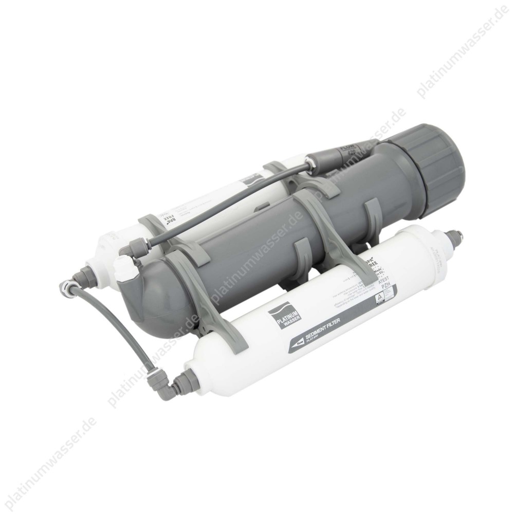 Филтрираща система, използваща обратна осмоза за производство на вода, подходяща за аквариуми. Филтрираната вода показва високо ниво на чистота, деминерализация и признак на обща твърдост. Такава вода може да се използва за приготвяне на желания състав за всеки тип аквариум. Системата има различни опции за използване, може да филтрира вода пред чувствително оборудване, лабораторни машини и може да се използва и като кухненски филтър.