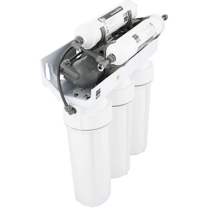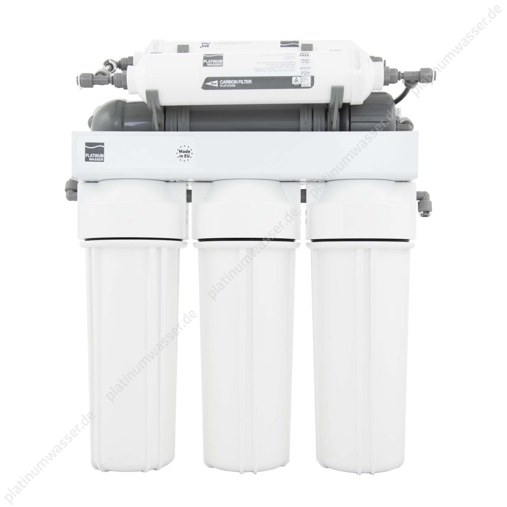Филтър за обратна осмоза с тристепенна предфилтрация и постфилтрация с въглероден постфилтър. Молекулните предфилтри са доказани класически филтърни касети, поставени в двойно уплътнени корпуси, за да осигурят възможно най-добрата защита срещу изтичане.