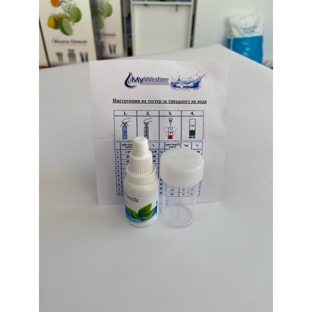 – добавете една капка реагент към тестваната вода и разклатете контейнера. Ако цветът на тестовата течност е зелен, това означава, че водата е напълно мека. Ако тестовата проба е червена, добавете още капки реагент.